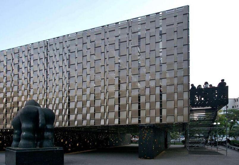 金屬材質作為風鈴幕墻的表皮再合適不過了,具有極強的反光力和獨特的金屬光澤,都為“流動”的表皮景觀中大大增色;別以為只有鋁板風動幕墻,還有不銹鋼材質風動幕墻、銅材質風動幕墻、PET材質風動幕墻。